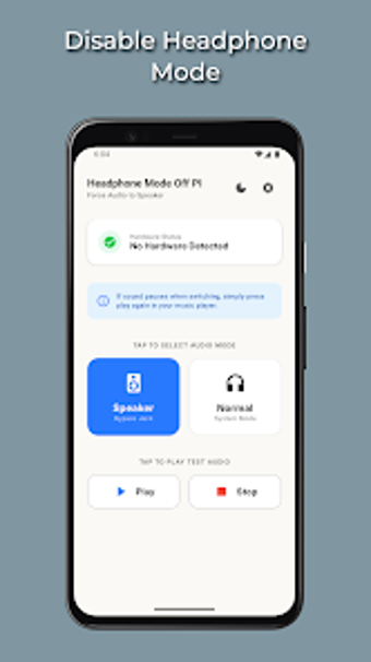 アプリの主な機能には、ユーザーがヘッドフォンジャック信号をバイパスできるスピーカーへの強制音声機能や、ヘッドセットが接続されているときに有効にできるイヤフォンモードが含まれています。さらに、アプリには、リアルタイムの音声ポートステータスを監視および表示するスマートハードウェア検出機能、即時の音声出力確認のための内蔵サウンドテスター、さまざまな照明条件でのユーザーの快適さのためのモダンなダークモードインターフェースが含まれています。